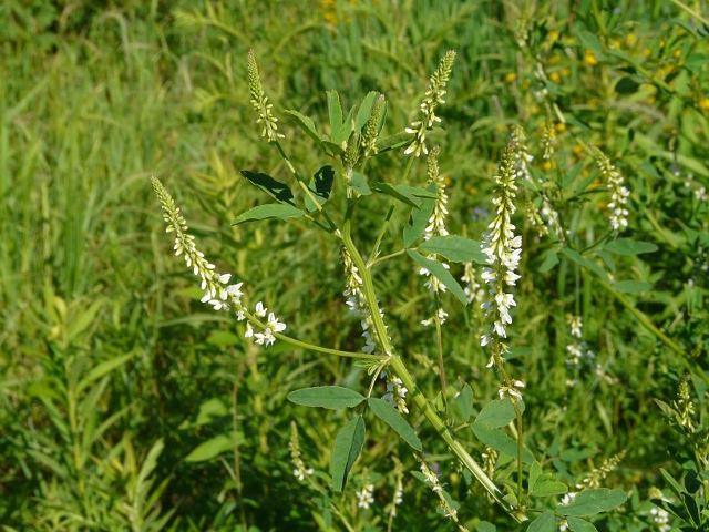 White Sweet-clover - flower approx. 5 mm - raceme 5 to 20 cm - leaves 1.5 to 5 cm, leaflet 1 to 2.5 cm - height to 3 m - Lower Don Valley (Leaside) - July 2010