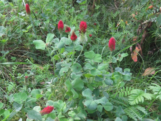 Crimson Clover - flower head to 5 cm - leaflet to 3 cm - height to 50 cm - Leslie Spit - October 2018