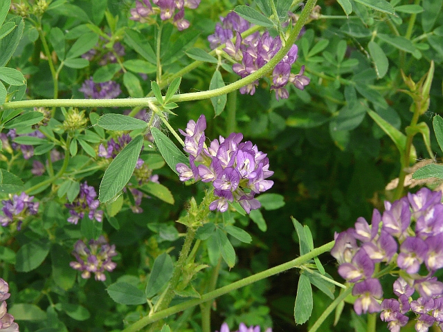 Alfalfa - flower to 1 cm - flower head 1 to 3 cm - leaves 1 to 3 cm - height to 1 m - Leslie Spit - July 2011