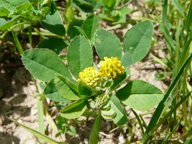 Black Medick - flower head approx. 1 cm - leaves to 3 cm - vine to 1 m - Lower Don Valley (Leaside) - June 2008