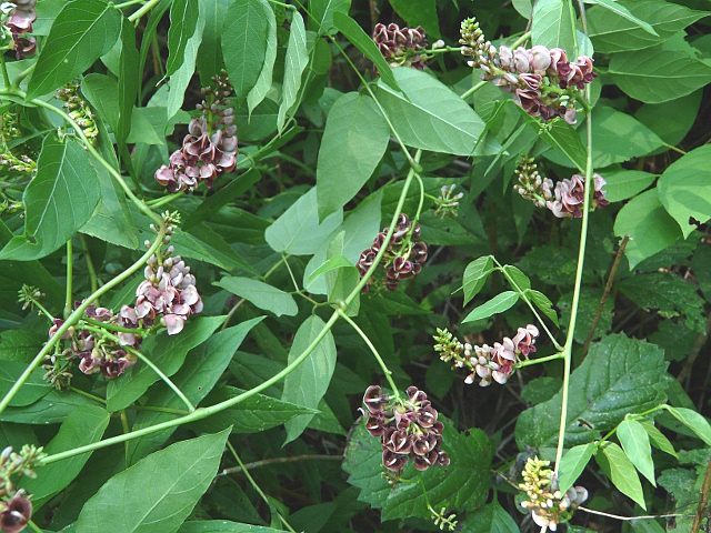 Groundnut - flower approx. 1.5 cm - fruit to 5 to 10 cm - leaves 10 to 20 cm, leaflet 4 to 6 cm - vine to 3 m - Lower Don Valley (Crother's Woods) - August 2010