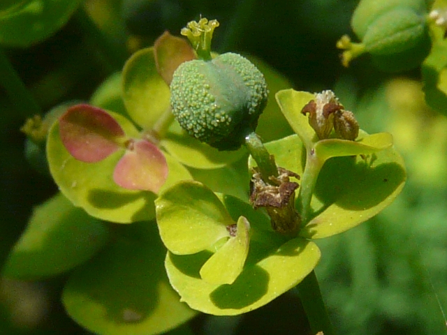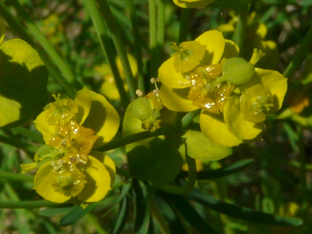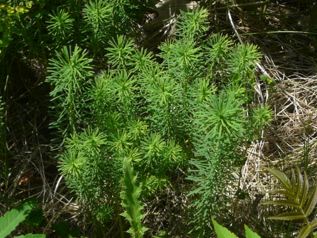 Cypress Spurge - flower approx. 3 mm - leaves approx. 4 cm - height to 50 cm - Lower Don Valley (Crother's Woods) - August 2016