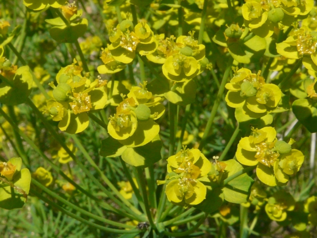 Cypress Spurge - flower approx. 3 mm - leaves approx. 4 cm - height to 50 cm - Lower Don Valley (Crother's Woods) - June 2016