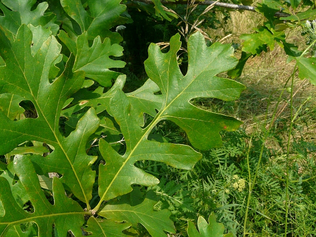 Bur Oak - fruit 2 to 3 cm - leaves 15 to 30 cm - height to 15 m - East Don Valley (Milne Hollow) - August 2011