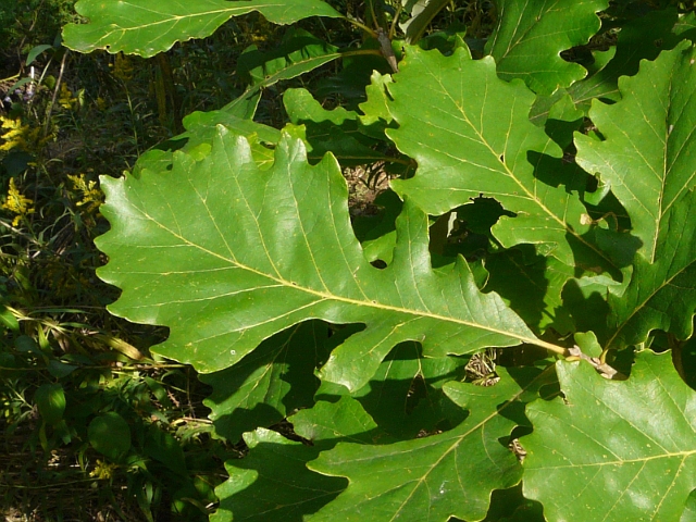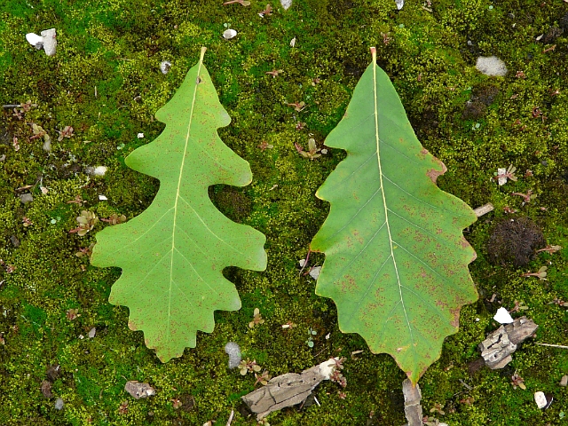 Bur Oak (left) and Swamp White Oak leaf comparison - Lower Don Valley (Crother's Woods) - October 2011
