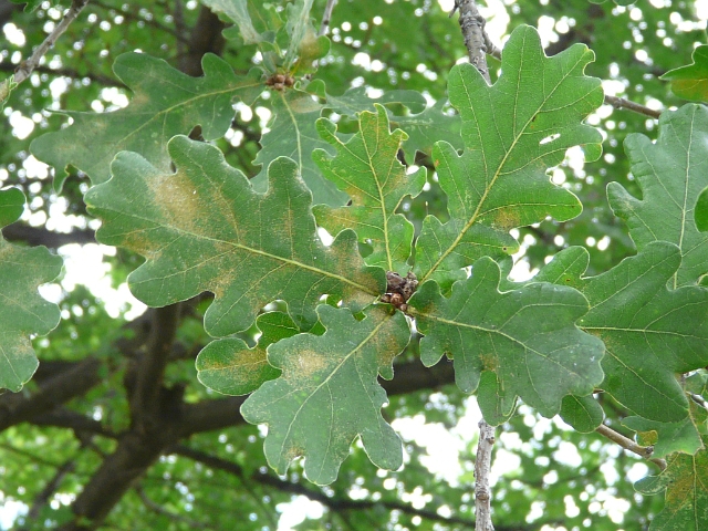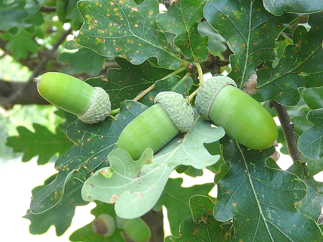 English Oak - fruit 1.5 to 4 cm - leaves 5 to 12 cm - height to 35 m - Cabbagetown - August 2012