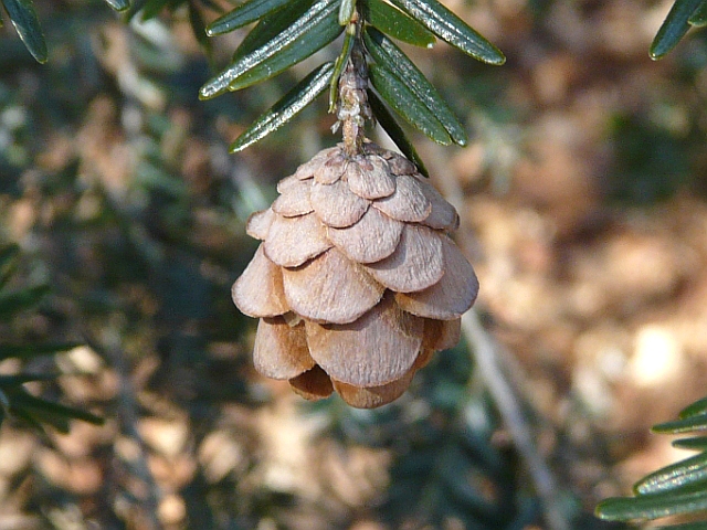 Eastern Hemlock - cones 1 to 2 cm - needles 1 to 2 cm - height to 30 m - West Don Valley (Wilket Creek Park) - February 2010