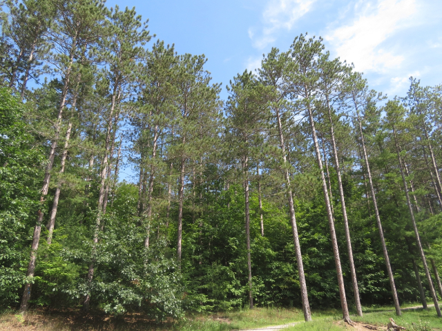 Red Pines - cone 4 to 7 cm - needles 10 to 16 cm - height to 25 m - York Regional Forest (Eldred King Tract) - August 2018