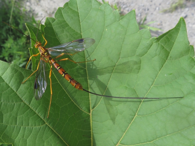 Ichneumonid Wasp (Megarhyssa species - female) - body approx. 5 cm (ovipositor approx. 7 cm) - Lower Don Valley (Todmorden Mills) - August 2019
