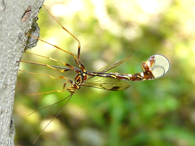 Ichneumonid Wasp (Megarhyssa species - female) on American Beech - body approx. 5 cm (ovipositor approx. 7 cm) - Lower Don Valley (Crother's Woods) - August 2010
