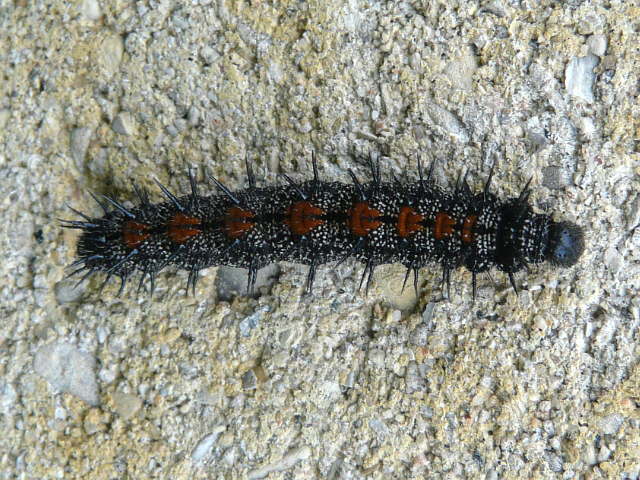 Mourning Cloak Butterfly larva - approx. 5 cm - Don Mills - June 2015