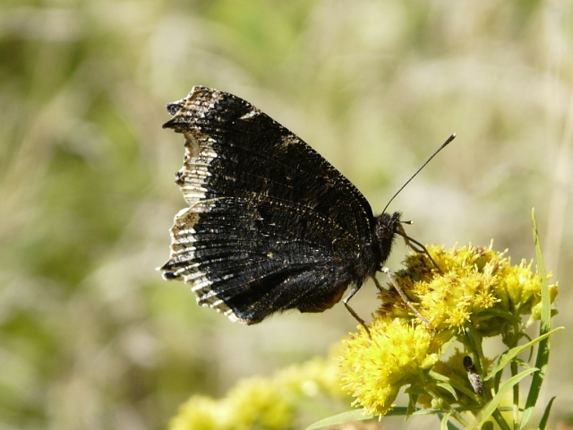 Mourning Cloak Butterfly - wingspan approx. 7 cm - Toronto Islands - October 2012