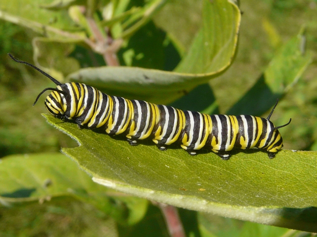 larvae feeding on Milkweed - the adults feed on the nectar of