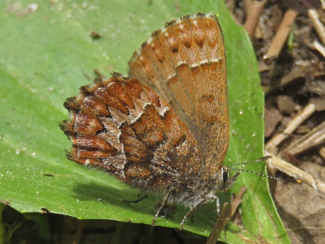 Eastern Pine Elfin Butterfly - wingspan approx. 3 cm - York Regional Forest (Eldred King tract) - June 2019