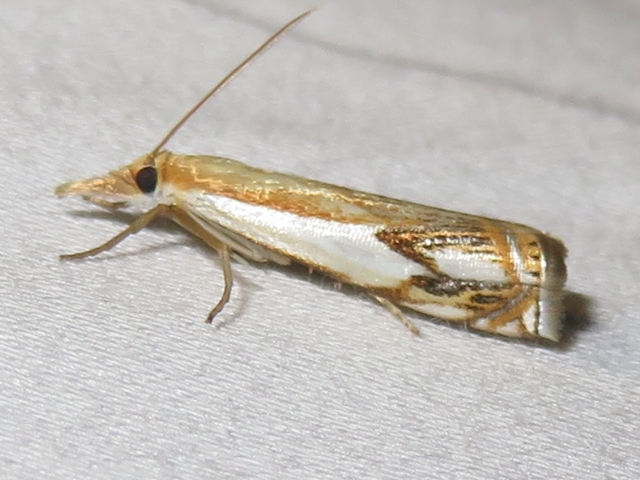 Double-banded Grass-veneer Moth - approx. 1.5 cm - wingspan approx. 2 cm - High Park - July 2018