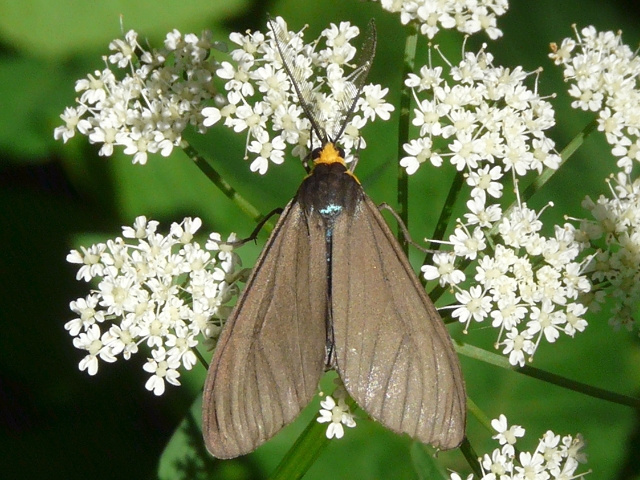 Virginia Ctenucha Moth (male) on Goutweed - wingspan approx. 5 cm - Lower Don Valley (Leaside) - June 2010