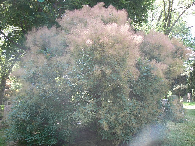European Smoketree - flower approx. 5 mm - fruit approx. 3 mm - leaf to 8 cm - height to 5 m - Mount Pleasant Cemetery - July 2007