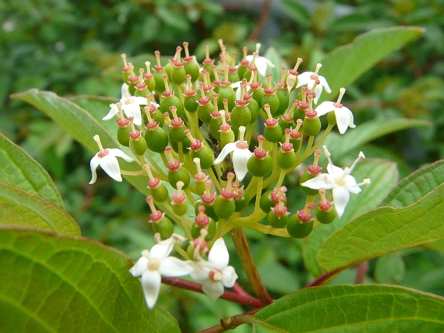 Red-osier Dogwood - flower approx. 1 cm - fruit approx. 1 cm - leaves 5 to 12 cm - height to 4 m - Beaver Creek (Richmond Hill) - July 2009
