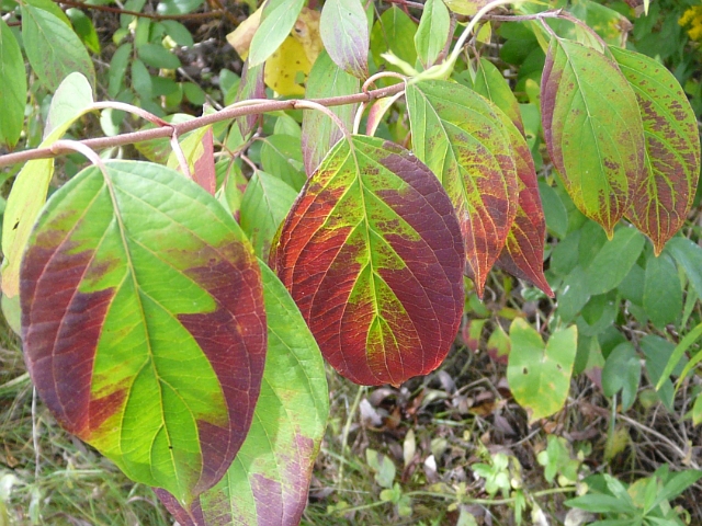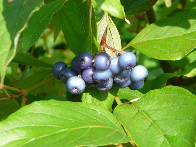 Silky Dogwood - flower approx. 5 mm - fruit approx. 1 cm - leaves to 10 cm - height to 3 m - Toronto Islands - September 2010