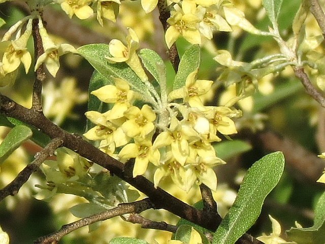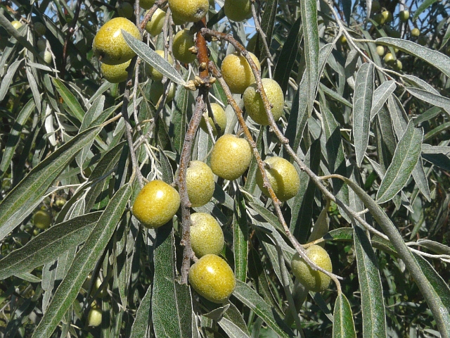 Russian Olive - fruit to 2 cm - flower approx. 1 cm - leaf to 8 cm - height to 7 m - Bluffers Park - January 2011