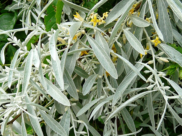 Russian Olive - fruit to 2 cm - flower approx. 1 cm - leaf to 8 cm - height to 7 m - Lower Don Valley (Crother's Woods) - June 2010