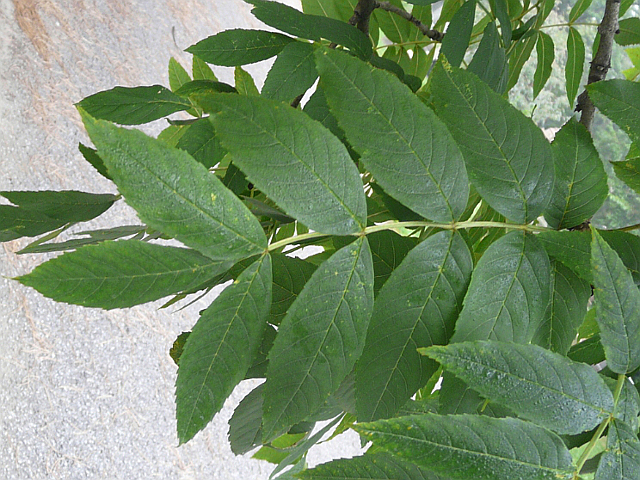 European Ash - flower tiny - fruit to 5 cm - leaf 20 to 35 cm - leaflet to 12 cm - height to 35 m - Mount Pleasant Cemetery - September 2015