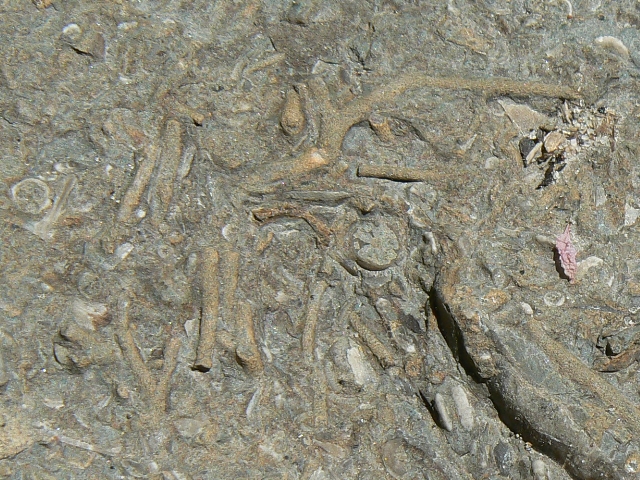 Brachiopods and Bryozoa - largest feature approx. 2 cm - Lower Don Valley (Brickworks) - August 2007