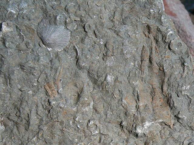 Brachiopods, Bryozoans and Cephalopod nautiloid (bottom right 5 cm) - Lower Don Valley (Brickworks) - August 2007